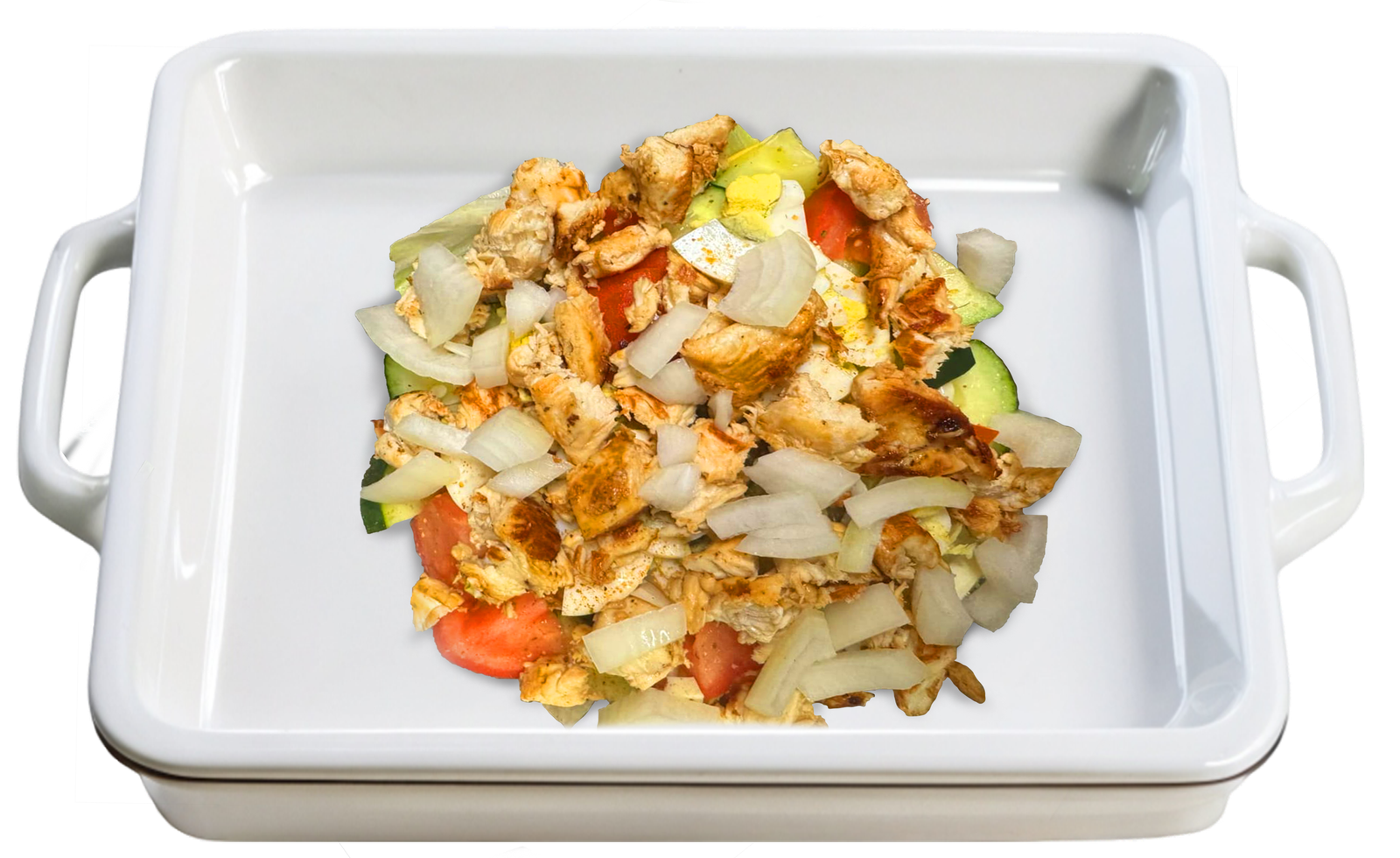 Grilled Chicken,lettuce, tomatoes, Onions,cucumbers,hard Bolled Egg & Shredded Cheese
