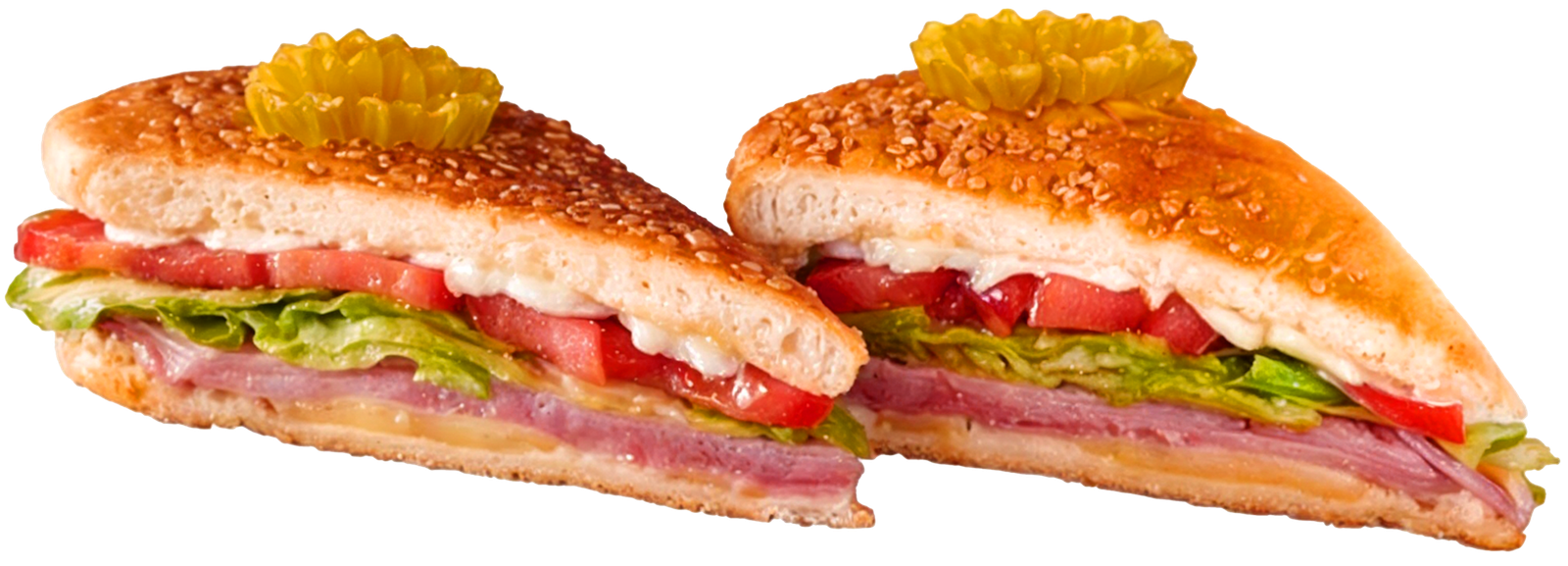 Ham, lettuce, tomattoes, mayo & swiss cheese all pressed together in a sub